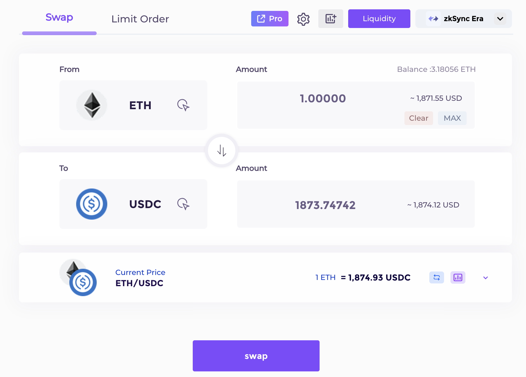 From the current price point, swaps will consume the liquidity of the other token depending on the direction of exchange. This liquidity includes that provided by limit orders and normal liquidity positions. When the liquidity at a price point is exhausted, the procedure continues to consume the liquidity at the next price point until all the liquidity at each price point is depleted or the specified quantity of tokens has been exchanged.